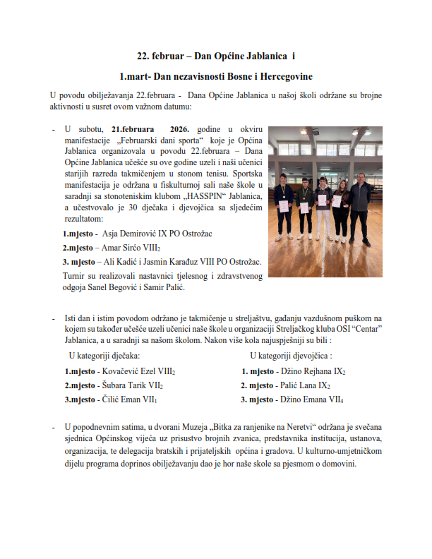 BOSNA I HERCEGOVINA Federacija Bosne i Hercegovine Hercegovačko-neretvanski kanton J.U. OSNOVNA...